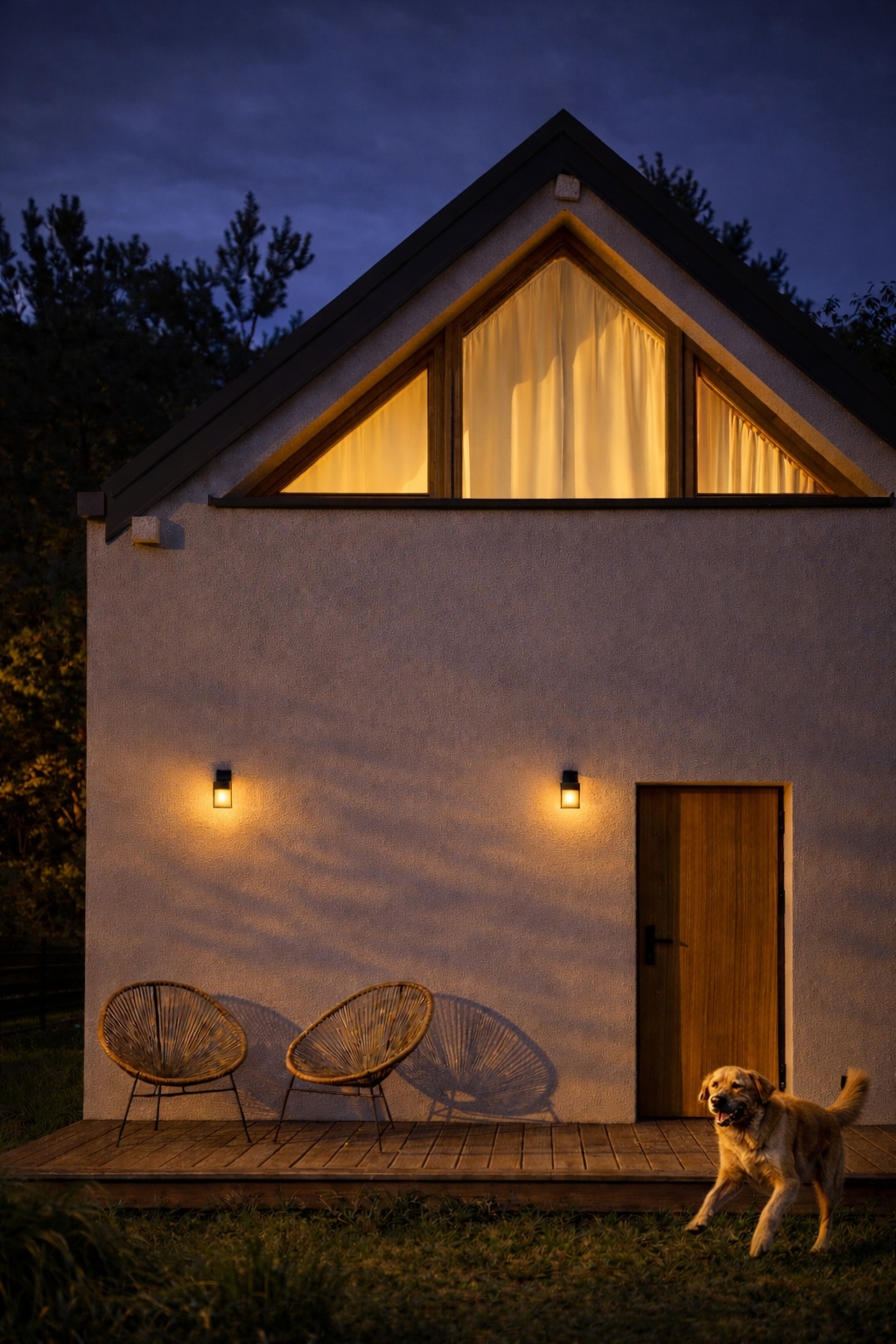Domek otoczony jest prywatną, ogrodzoną działką 700 m², która zapewnia swobodę wypoczynku i poczucie prywatności. W ogrodzie znajduje się miejsce na ognisko, grill oraz przestrzeń do relaksu na świeżym powietrzu. Bezpośrednie sąsiedztwo lasu pozwala cieszyć się ciszą i spacerami tuż za bramą. Ogrodzony teren jest komfortowy dla par, rodzin i osób z psem. To idealne miejsce na romantyczny wypoczynek blisko natury. Nad morze można dojechać samochodem w około 20 minut.