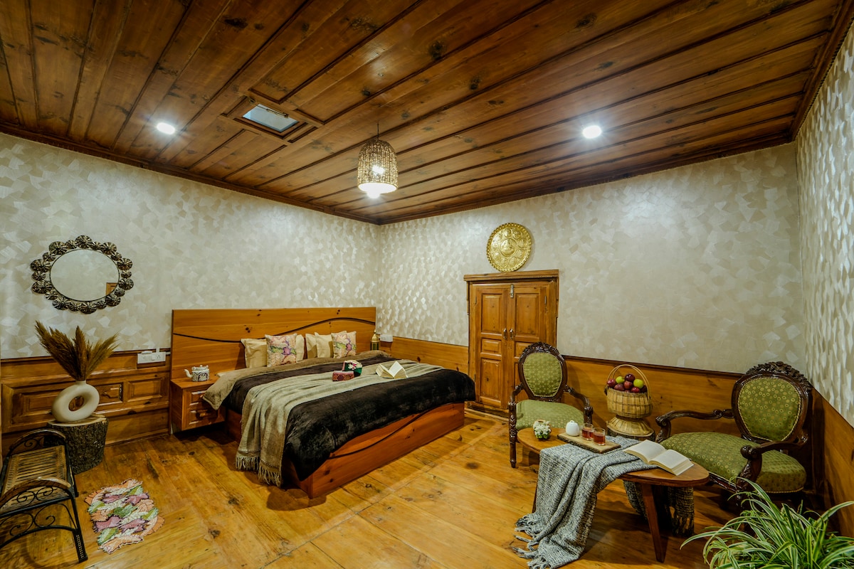 Tranquilízate en esta escapada única y tranquila que se encuentra en el regazo del Himalaya. La casa de madera cuenta con dos dormitorios, una habitación para trabajar, biblioteca y juegos de interior, un dormitorio de madera de 8 camas en un ático con vistas fascinantes. La casa de familia está a una altitud de 2300 metros y es el último pueblo, por lo que los huéspedes pueden obtener la tranquilidad y la paz mientras se hospedan aquí. El aparcamiento está a solo 50 metros de la propiedad con la visibilidad adecuada.