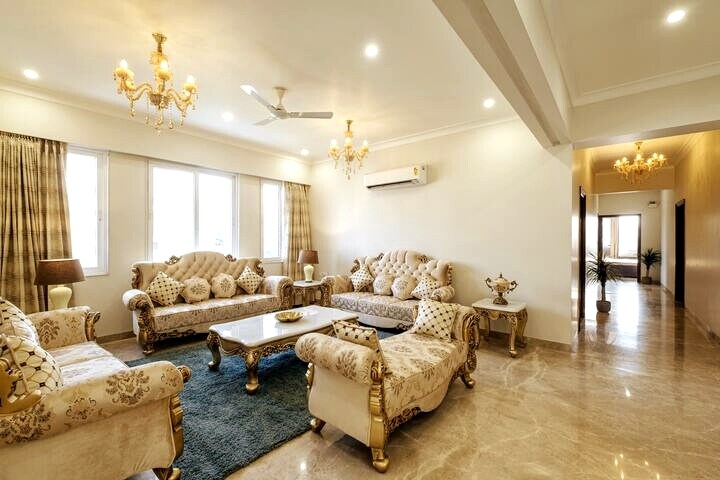Este alojamiento, Palm 34, se encuentra en Civil Lines, la ubicación más exclusiva de Jaipur. Es un lujoso bungalow moderno envuelto con un exuberante césped verde. El alojamiento tiene 4 habitaciones espaciosas en la segunda planta para alojar a 14 huéspedes con camas supletorias. Además, tiene una sala de estar de lujo, un comedor estético y una cocina privada. Los huéspedes son libres de relajarse y rejuvenecer en la terraza bellamente diseñada. Se puede organizar un cocinero privado por un cargo adicional
