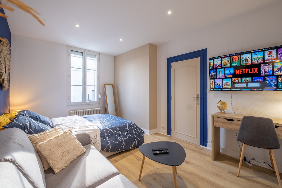 Pequeño estudio cálido y de diseño para sus estadías en Limoges. A dos pasos de la estación de tren, disfrute de un espacio optimizado con una cama real y una hermosa cocina. Muy luminoso y totalmente equipado (¡impresora!), es ideal para sus viajes de negocios. Estacionamiento gratuito a 3 minutos, ascensor y acceso rápido al centro de la ciudad. Se proporcionan sábanas y toallas, lavadora con secador disponible y cocina equipada (horno, microondas, Nespresso, placas,...) con desayuno disponible.
