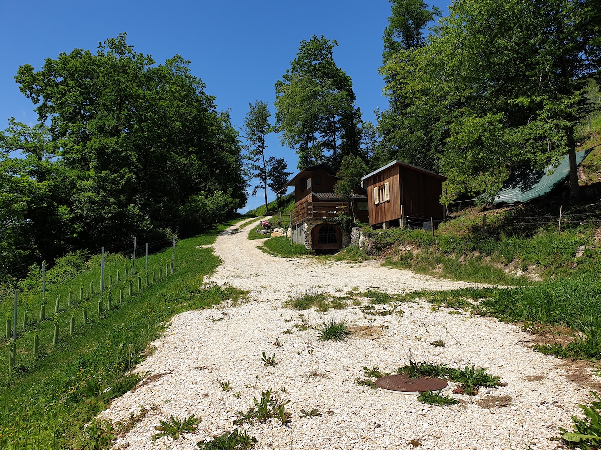 La casa de la viña se encuentra en medio de un paisaje idílico en el borde de nuestro viñedo "Clos de la Rocaille", en el cantón del Jura. Tiene una vista de todo el valle. Ubicación muy tranquila, chalet romántico sencillo con dormitorio, cocina y WC. / Sin ducha ni agua caliente