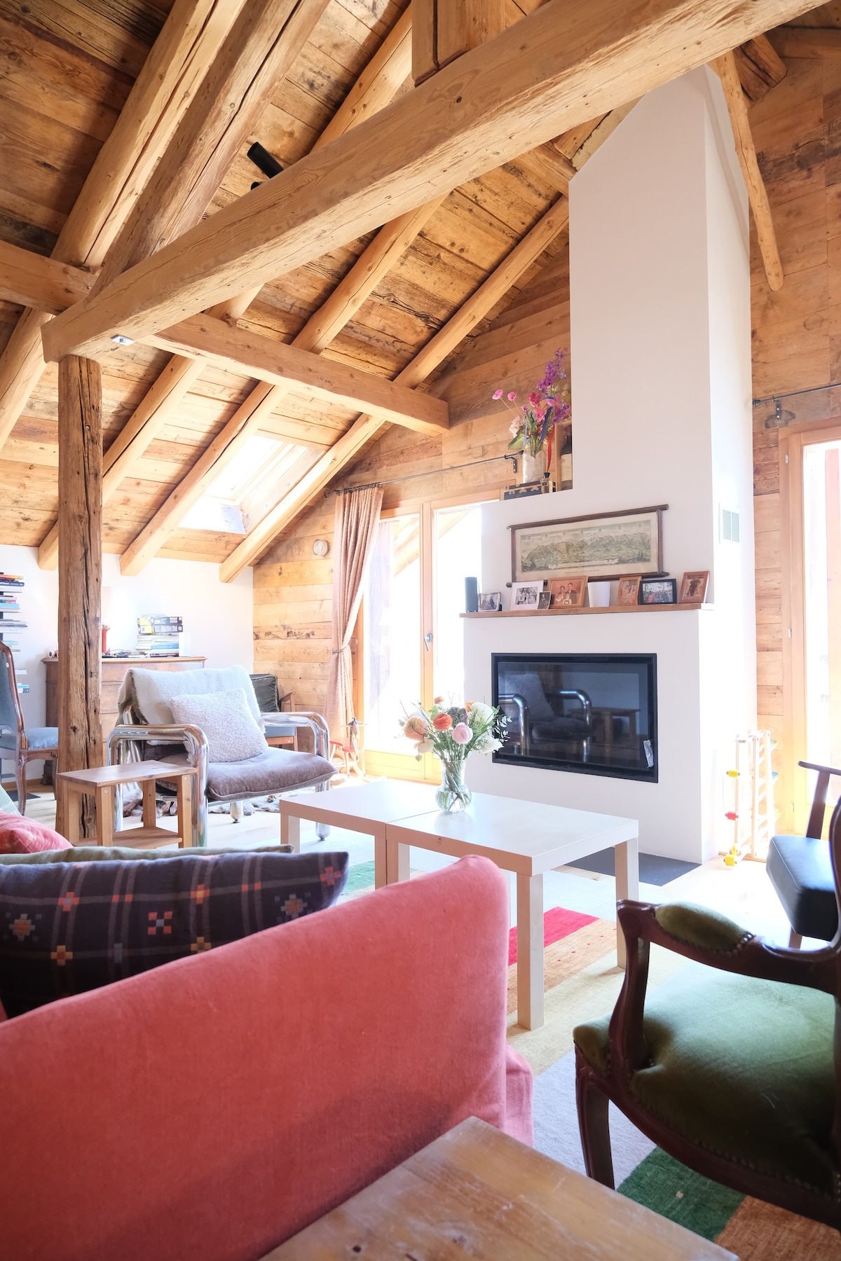 Bienvenido a nuestra extraordinaria y creativa casa, situada a solo 10 minutos en auto del pintoresco pueblo de Gstaad y muy cerca de la icónica montaña Glacier 3000. Esta propiedad, diseñada por el arquitecto local Michi Gehret, es una mezcla armoniosa de expresión artística y diseño poco convencional. Esto es para la persona de espíritu libre que disfruta del diseño poco convencional de sin puerta de inodoro y ducha abierta. ¡Todo forma parte de la experiencia!