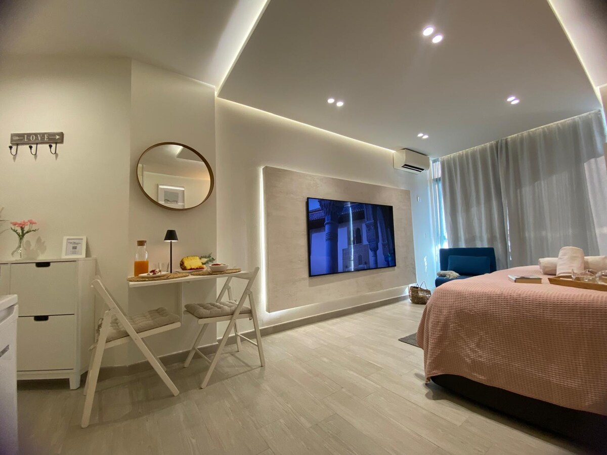 Moderno estudio, recién diseñado a estrenar. - Jacuzzi privado en terraza. - Piscinas públicas gratis en el edificio en verano. - Aire acondicionado. - Teletrabajo con internet 300mbps. - Café gratis y cocina equipada! Tren Aeropuerto-Torremolinos 9 minutos! y a Málaga Centro 20 minutos! 3min andando: - Centro de Torremolinos. - Discotecas LGTBi+ 🏳️🌈 - Estación de autobuses y tren. 10min andando: Playa el Bajondillo y Playa Eden Gay beach 🏳️🌈 ...ven y disfruta!