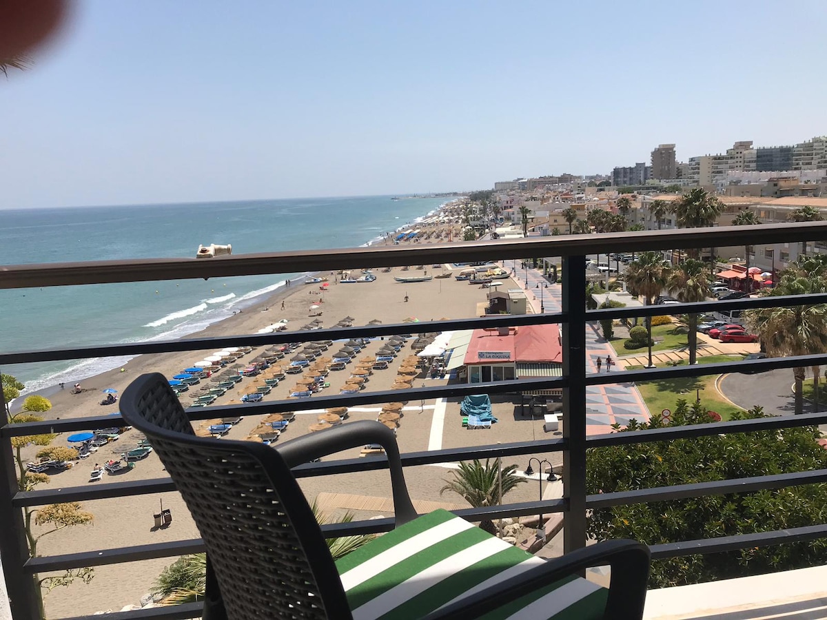 This loft has a gorgeous view to the sea and mountains and it is tastefully furnished. One space unit that will allow you to admire the sea from all areas. Located in a quiet green residential area with beautiful gardens and a pool. You can enjoy the confort and convinience of a private huge terrace , a perfect place to relax! Down the hill (quite steep) hill you´ll get to La Carihuela Beach with lots of restaurants and shops. The train station is a short walk away and across the road .