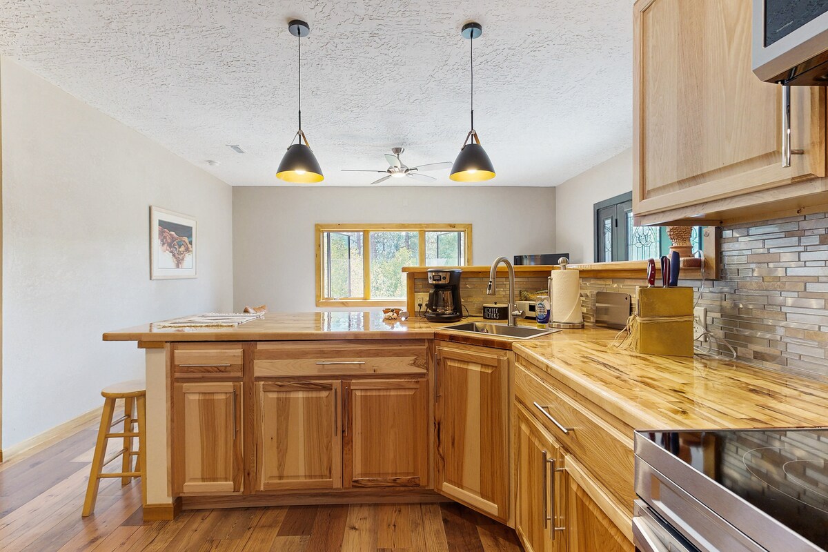 Bienvenidos a nuestro pequeño pedazo de cielo. El apartamento está por encima de nuestro garaje independiente y se accede a través de una entrada independiente. Lo hemos equipado con todo lo necesario para que disfrutes de una estancia cómoda y relajante. El vecindario ofrece un lago (con un sendero para caminar) justo al otro lado de la calle, acceso al Bosque Nacional y vida silvestre (ciervos, pavos, el oso ocasional). Vivimos en el lugar y estamos aquí si tienes preguntas o necesitas recomendaciones.