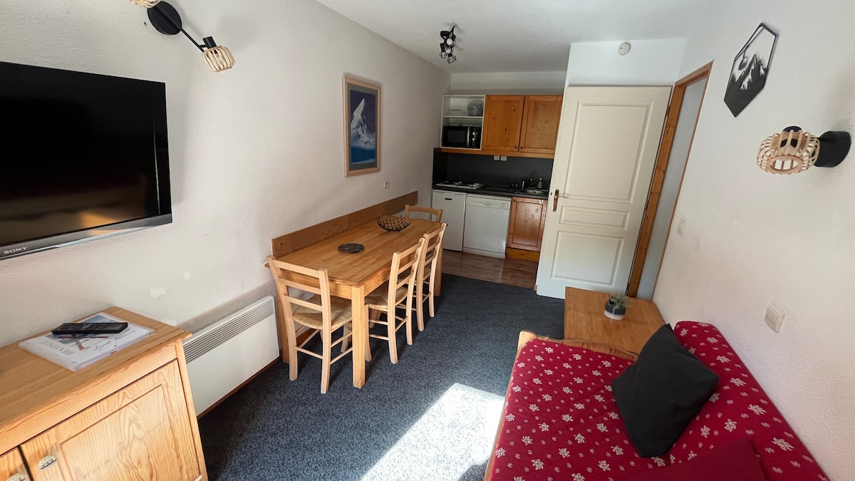 Acogedor estudio de 25 m² con acceso directo a las pistas. Ropa de cama incluida. Cama hecha.