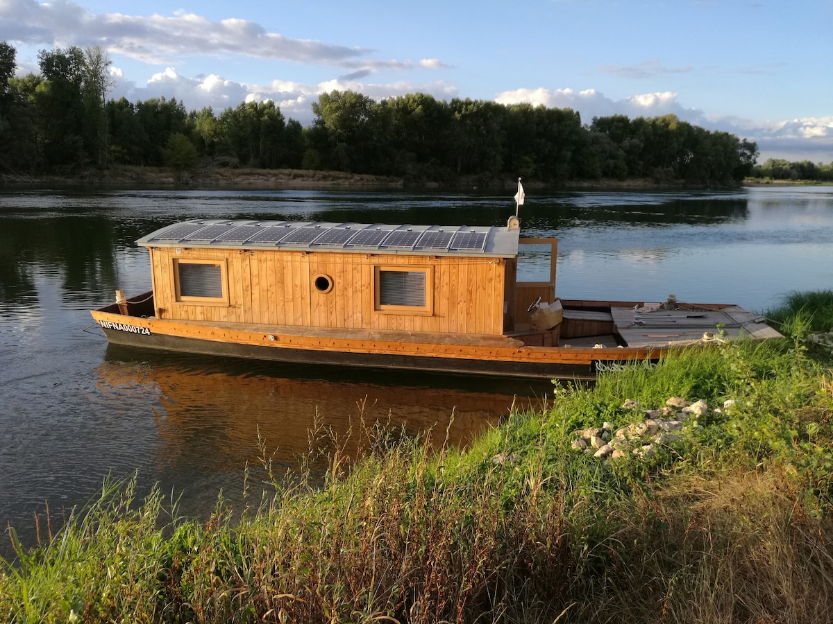 Outre-Loire es una « cabaña toue » (barco de cabaña tradicional tipo flota del Loira), anclada en el espléndido entorno del antiguo puerto de Chambord, a 2,5 millas del famoso castillo. Con equipos hechos a medida y la tecnología más reciente, el barco te proporcionará 1 cama doble y 3 cómodas individuales, área de cocina, nevera, ducha caliente, inodoros, corriente de aire acondicionado de 220 V, enchufes USB de 12 V y WiFi.