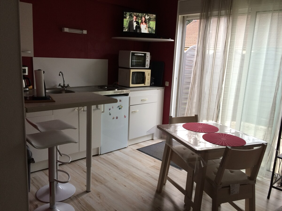 Disfrutará de nuestro alojamiento por la ubicación y la comodidad. Perfecto para parejas y familias (con uno o dos hijos), se encuentra en una pequeña casa de 25 m² independiente de nuestra casa de habitación de la que está a solo unos metros, dentro de un perímetro seguro que incluye el aparcamiento de su coche directamente accesible desde su habitación. Para garantizar su tranquilidad, los electrodomésticos y los ingredientes del desayuno están a su disposición.