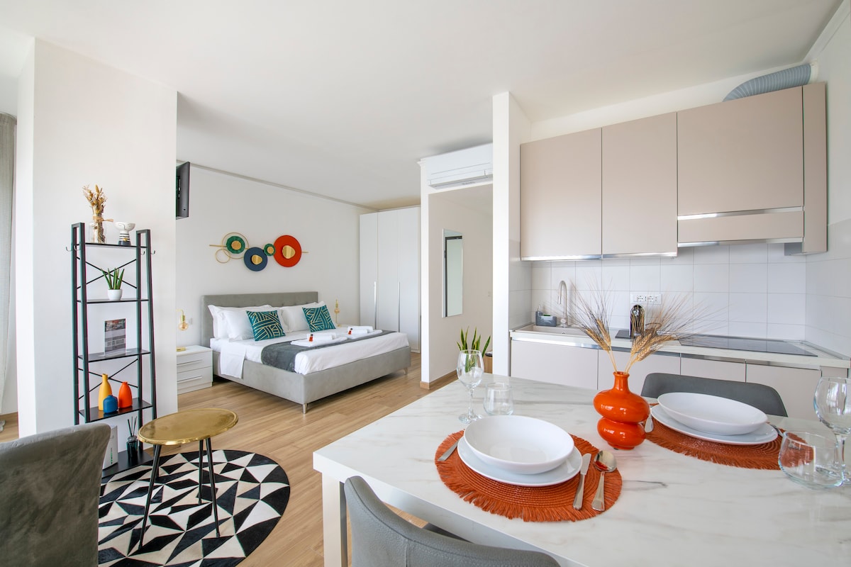 Luminoso apartamento de una habitación totalmente eléctrico y amueblado de forma funcional para viajeros de todo el mundo. Está ubicado en el sexto piso, con ascensor, de un complejo de condominios en las inmediaciones de las murallas históricas de la ciudad de Verona. Situado en una posición estratégica, a pocos pasos de la estación "Verona Porta Nuova" (1 km), la Feria (2,7 km) y la famosa Arena de Verona (1,9 km). Nuestros huéspedes tienen libre acceso al aparcamiento privado del condominio.