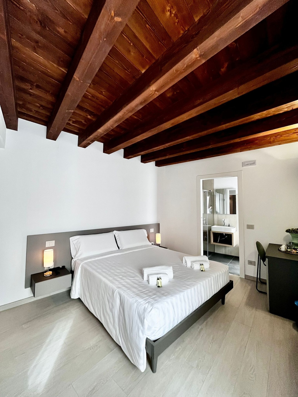 Suite Junior exclusiva en un hotel boutique de bienestar a pocos pasos del lago de Garda. ¿Su punto fuerte? Una bañera de hidromasaje privada en la terraza para relajarse al aire libre. Diseño elegante, una acogedora cama tamaño king, baño moderno con ducha espaciosa y un rincón para té y café. Un refugio íntimo donde la comodidad, el bienestar y el romanticismo se unen para ofrecerte una estancia inolvidable.
