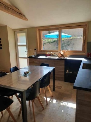 Casa tranquila con vistas. Completamente renovada, gran sala de estar, cocina equipada, aseo, 1 sofá cama, 1 suite principal. Arriba 1 dormitorio con 2 camas de 160 1 cuarto de baño con ducha 1 aseo separado . 1 cama de matrimonio y una cama individual . En el sótano una zona de relajación con spa sauna hammam (por un suplemento de 30 € por persona para la primera noche más 10 € por noche adicional y por persona. Un jardín con plancha de gas ,petanca ,zona de comedor . Aparcamiento . Esta casa ha obtenido 4 estrellas .