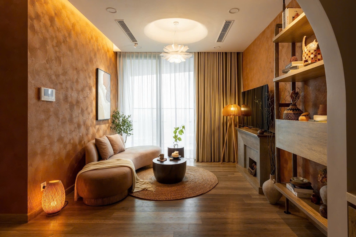 Relájate en este acogedor y lujoso apartamento de Ecopark con baño privado, sauna privada y minibar de cortesía. La cocina incluye freidora de aire, microondas, cocina completa, incluidos utensilios de cocina y sistema de agua filtrada, además de lavadora y secadora. Gimnasio gratuito. La piscina y el onsen son accesibles con tarifas en un entorno verde exuberante. A solo 30 minutos del casco antiguo de Hanoi con servicio de autobús cada hora. Los huéspedes mensuales disfrutan de beneficios adicionales de cortesía para obtener aún más valor.
