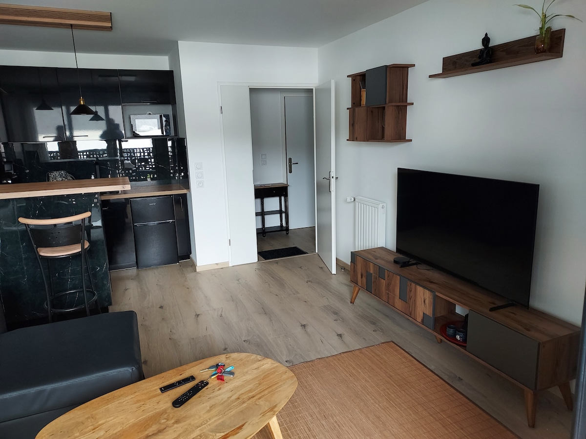 Hermoso T2 nuevo (50 m2) en residencia privada 2ª planta con ascensor + aparcamiento cubierto seguro . Cocina equipada , horno , nevera , microondas , cafetera, hervidor . Café Nespresso compatible , té , azúcar proporcionados . TV , wifi . Cuarto de baño con lavadora , inodoro japonés . Estación de tren a 7 minutos andando , intramuros y puerto a 10 minutos , barrio histórico de San Patern a 5 minutos andando . Hora de llegada de 15:00 a 21:00.