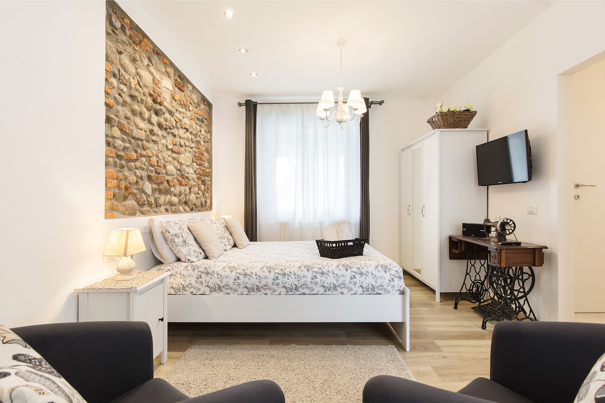 Sumérgete en la comodidad de este apartamento, situado en una casa de corte lombardo. El mobiliario especial y la calidez de la piedra a la vista recuerdan la antigua vida de la zona, ahora un centro aeroportuario, haciendo de tu estancia un viaje, no una parada. CIR: 012123-FOR-00001 ¡ELENA y MARCO están encantados de recibirte! Apartamento totalmente independiente; incluye cocina para el desayuno, amplio dormitorio que consta de una cama doble + 1 individual (posibilidad de añadir una cama individual adicional) y baño privado con ducha. A disposición de los huéspedes y sin coste adicional: aire acondicionado, wifi y altavoz Bluetooth. Ofrecemos un pequeño desayuno de autoservicio a todos nuestros huéspedes Los huéspedes tendrán acceso exclusivo al apartamento. LA ÚNICA PARTE COMÚN ES EL RELLANO DE LA ENTRADA. A cada huésped se le dejará la llave de la puerta principal y la de su apartamento. Está absolutamente prohibido permitir el acceso a personas ajenas a la reserva. Siempre disponible por teléfono. Envía un mensaje de texto y te responderé lo antes posible. El apartamento se encuentra en un pequeño pueblo entre las terminales de Malpensa, al que se puede llegar desde el edificio con un servicio de transporte. La presencia de un excelente restaurante en las inmediaciones añade la posibilidad de una relajación real, más allá del estrés del viaje. Se puede llegar al centro de Milán en 45 minutos; hay varios autobuses y trenes cada 10 minutos desde el aeropuerto También es posible organizar traslados privados a todo el norte de Italia y Suiza a precios especiales; para más información estamos a su disposición. Aparcamiento de larga duración concertado Un excelente servicio de transporte desde y hacia las terminales del aeropuerto de Milán Malpensa, totalmente gratuito, facilitará la organización del «check-in» y el «check-out» de nuestros huéspedes. Es indispensable disponer de un teléfono móvil para poder avisar a nuestros conductores en cualquier momento y garantizar una excelente organización; como alternativa, se puede llegar a pie al punto de encuentro.