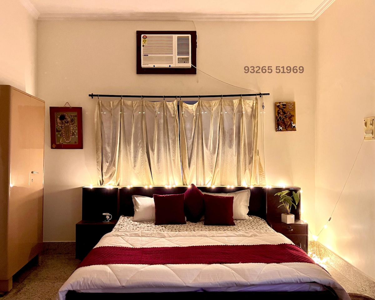 This spacious, peaceful Airbnb offers the entire first floor with air-conditioned rooms and a fully equipped kitchen. Luxuriously furnished, it provides a comfortable retreat close to all important temples and sightseeing spots. Perfect for travelers seeking convenience, comfort, and easy access to cultural landmarks in a serene setting. Non-vegetarian and alcohol is not allowed. We are manufacturer of Banarasi Silk sarees and offer whole sale price to our guests if you want to have a look.