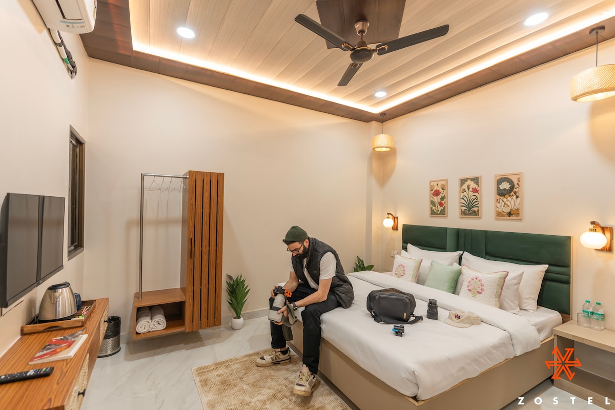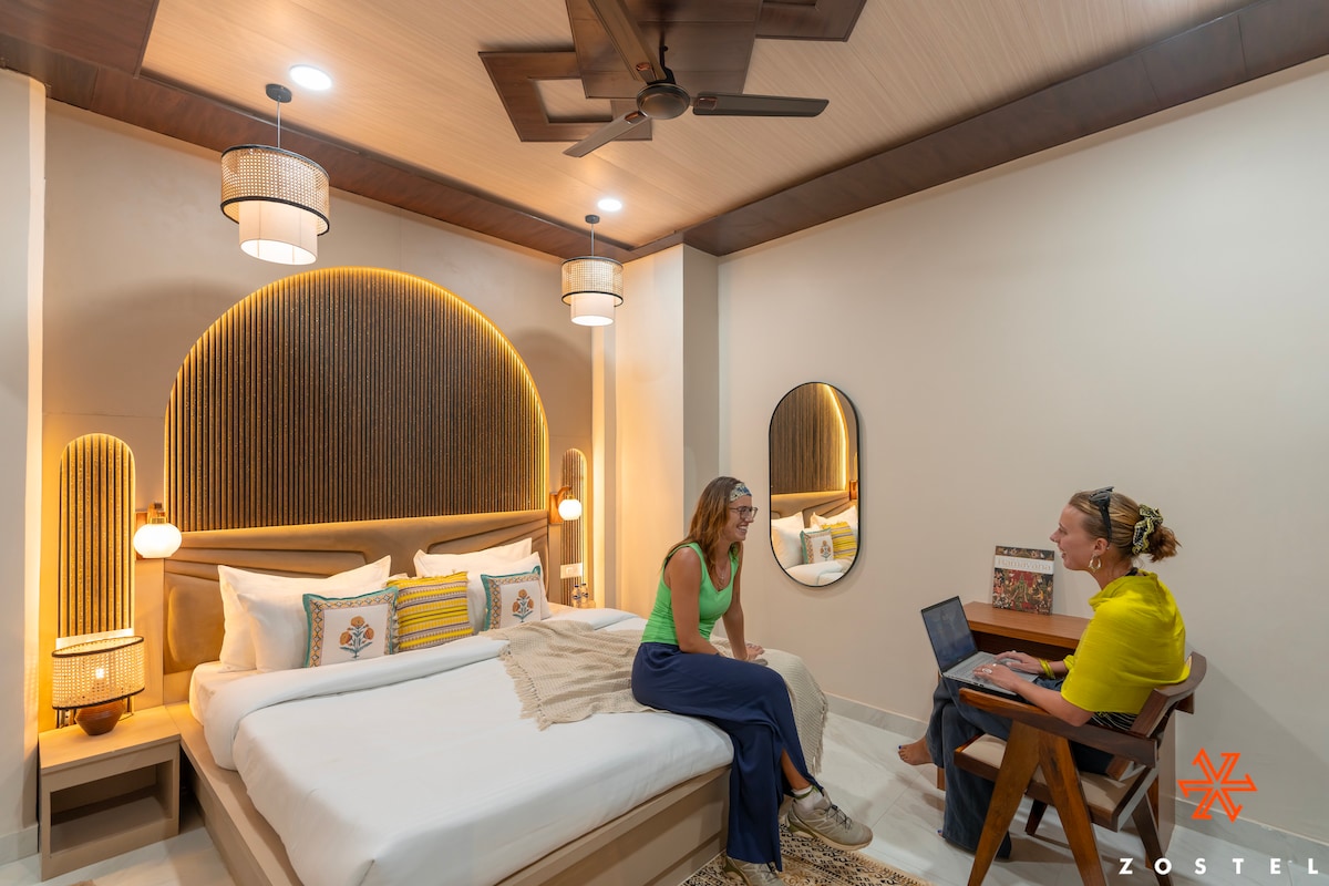 Soak in the city views in this private room that comes with a king-sized bed, a TV, an AC, a work desk, and an ensuite washroom. We've arrived in one of the world's oldest living cities with Zostel Varanasi (Dashashwamedh). 5 mins from Dashashwamedh Ghat, our hostel in Varanasi brings together a vibrant common room, a breezy rooftop area, and comfortable dorms & private rooms.