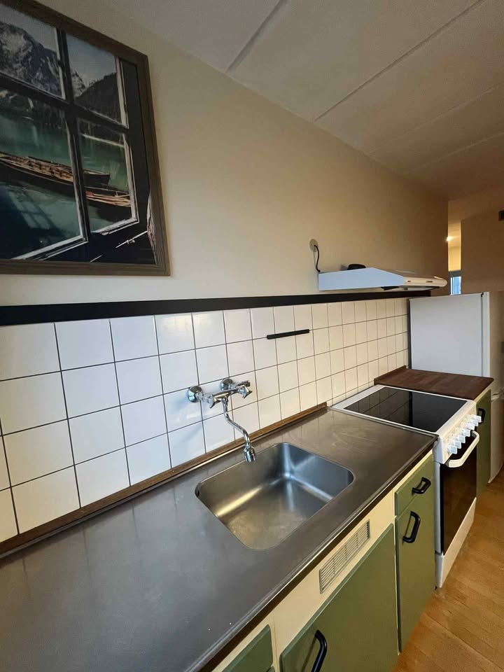 Rummelig 1. sals lejlighed beliggende blot 800 meter fra Esbjerg torv og maks 200 meter til sygehuset. Lejligheden har fuldt udstyret køkken, et soveværelse med skabsvæg og 1.40 seng. Fra køkkenet kan man gå videre ud det lyse rum hvor spisebordet er placeret samt der er en sovesofa. Døren til dette rum kan lukkes, således at det kan fungere som et ekstra værelse. Lejligheden rummer et større badeværelse med bruseniche og god opbevaring.