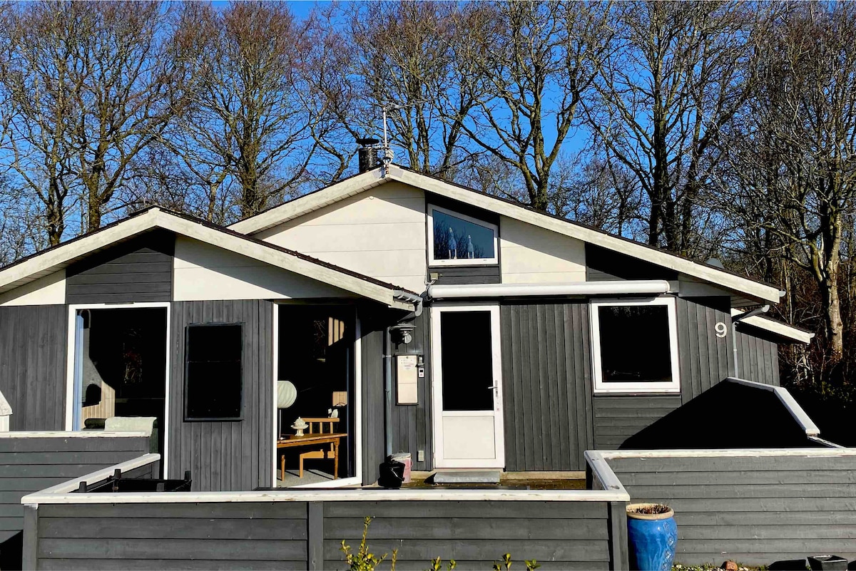 Relájate en una cómoda cabaña, en tu propio pequeño bosque de árboles viejos, hasta el hermoso lago. El tranquilo paraíso privado está a solo 20 minutos de Legoland, y el banco junto a la mesa del comedor está lleno de Lego Duplo ;) ¡La terraza cubierta con sofá cama, la nueva estufa de leña, el internet ultrarrápido y el gran televisor inteligente garantizan unas vacaciones en todo tipo de clima! Te encantará esto después de un día concurrido en los parques :)
