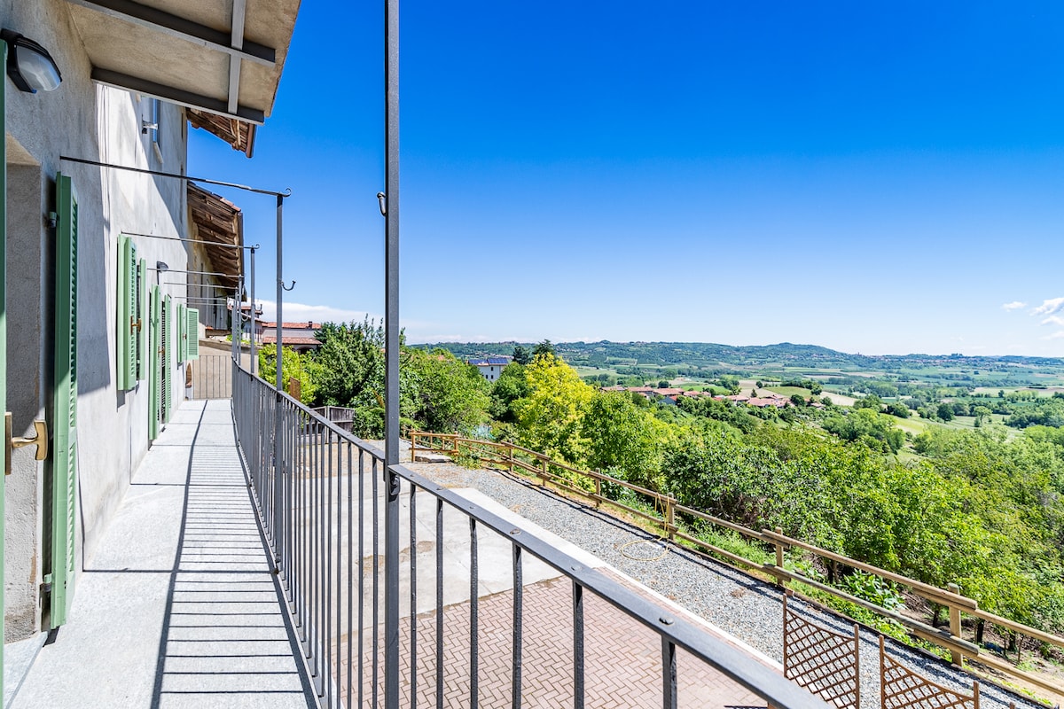 Elegante cascina immersa nelle colline del Monferrato. L'alloggio indipendente per gli ospiti, ricavato dal fienile, è completo di saletta con cucina, comodo bagno ed ampia e luminosa camera con un letto matrimoniale e un letto piazza e mezza ideale per una coppia, famiglia o gruppo di amici, sino a 3/4 persone. Dall'appartamento si potrà godere di una vista panoramica incantevole, così come dalla grande terrazza dove serviamo la ricca colazione. A disposizione anche gli spazi esterni relax.