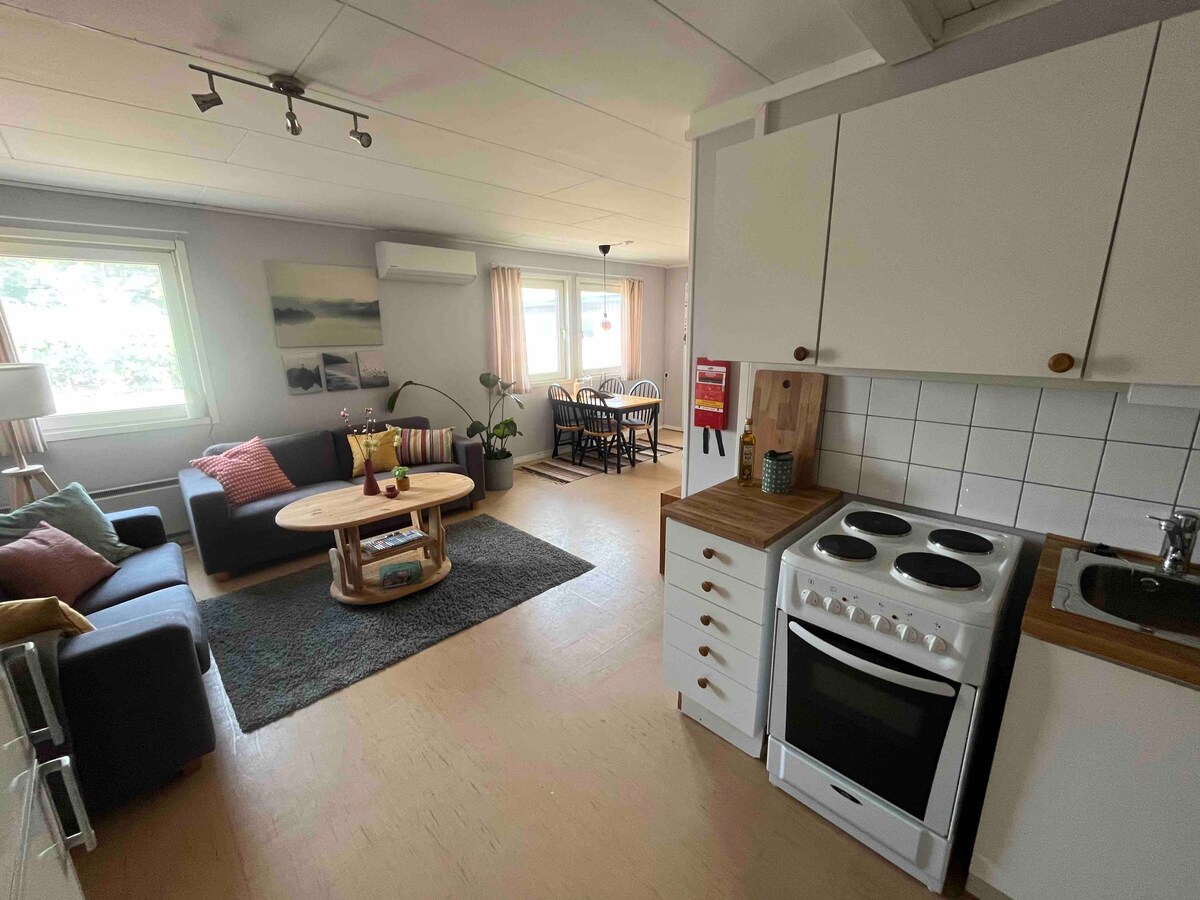 Mysig es la palabra sueca para acogedor. En lo que respecta, el apartamento hace honor a su nombre. Está bien equipado con todo lo que necesitas para unas vacaciones relajantes y, con suerte, "acogedoras". El apartamento Solig y Mysig se alquilan como un colectivo. Eso significa que no tienes que compartir el espacio y el jardín con otras personas. Si estás con más de 4 adultos, contáctanos por opciones y precios. Hay espacio en el edificio para un máximo de 20 personas.