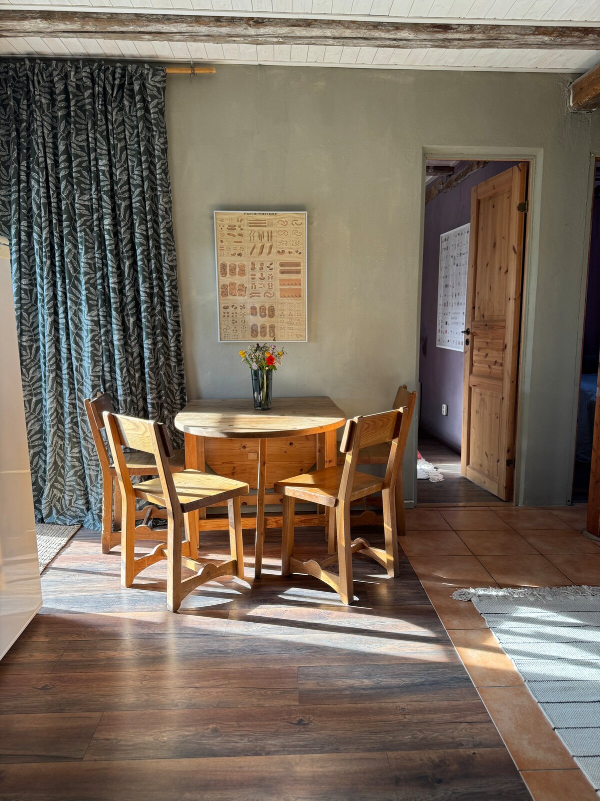 ¡Bienvenido a una estancia tranquila en mi acogedor apartamento! Vivirás en tu propia casa, mi anexo, con acceso a tu propio patio. Delante de la casa hay una zona verde, por lo que te despertarás con el canto de los pájaros cada mañana. Tranquilo y agradable en un callejón. El apartamento consta de salón, cocina, pasillo amueblado, dormitorio con un par de camas (se pueden unir) en la planta superior. Aseo, cuarto de baño, sauna, vestíbulo y lavandería en la planta baja. Hay una pequeña nevera, un par de placas de cocina, microondas y cafetera.