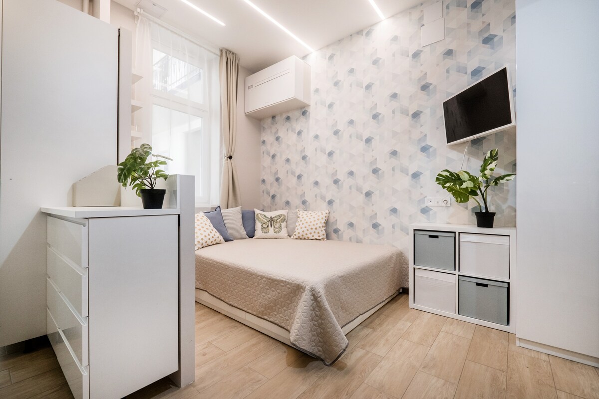 Elegante estudio a estrenar de 34 metros cuadrados en el centro de la ciudad. Este apartamento es un lugar ideal para 2 viajeros que buscan un lugar tranquilo y privado en el centro de Budapest. El apartamento totalmente amueblado y equipado con aire acondicionado consta de una luminosa sala de estar con cocina, un baño privado con ducha, una cama doble de 160*200 y un sofá cama de 140*200.