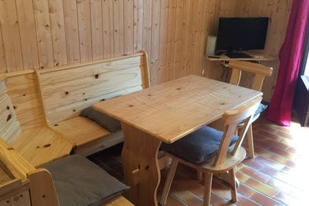 Studio tout équipé situé au 1er étage, parking gratuit au pied de la résidence. Vous trouverez une banquette lit en 160*190 cm et également un lit superposé en 70*190cm. La cuisine est équipée avec lave linge, sèche linge, lave vaisselle, plaque induction, micro-onde et réfrigérateur. Nombreux rangements. La salle de bain est entièrement rénovée avec baignoire et sèche serviette. Toilette séparé. La loggia vous permet de profiter de l'extérieur avec vue sur les montagnes.