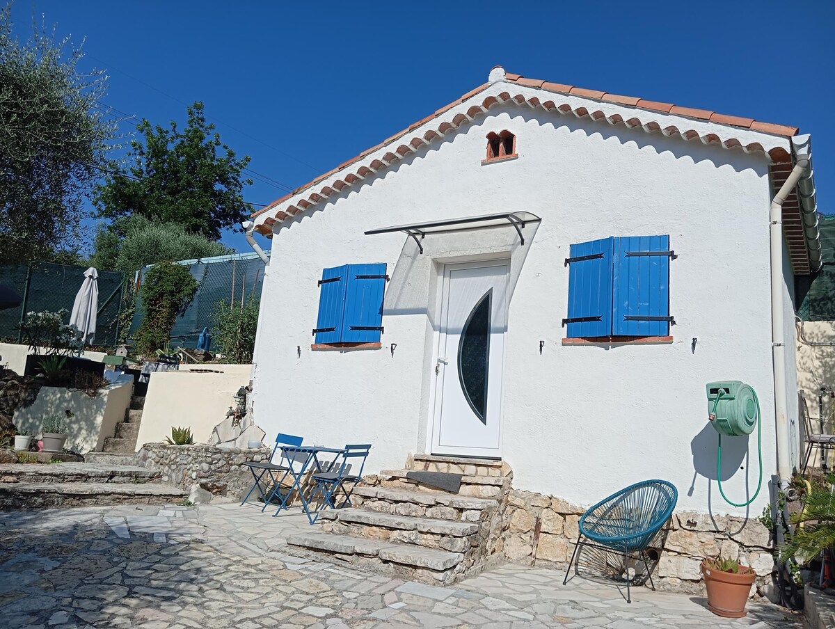 Estudio independiente de 35 m² con una hermosa terraza de madera independiente de 40 m², jacuzzi privado exclusivo en el estudio, excelentes vistas del Valle del Lobo. Habitación, cama y mosquitera para dos personas con vistas a la naturaleza, cocina equipada, baño con ducha/lavabo/inodoro. A 10 minutos del río a pie, sitio de barranquismo, muchas rutas de senderismo, parapente... A 20 km del mar , valle rodeado de pueblos pintorescos y muy turísticos como Tourrettes-sur-Loup y Gourdon.