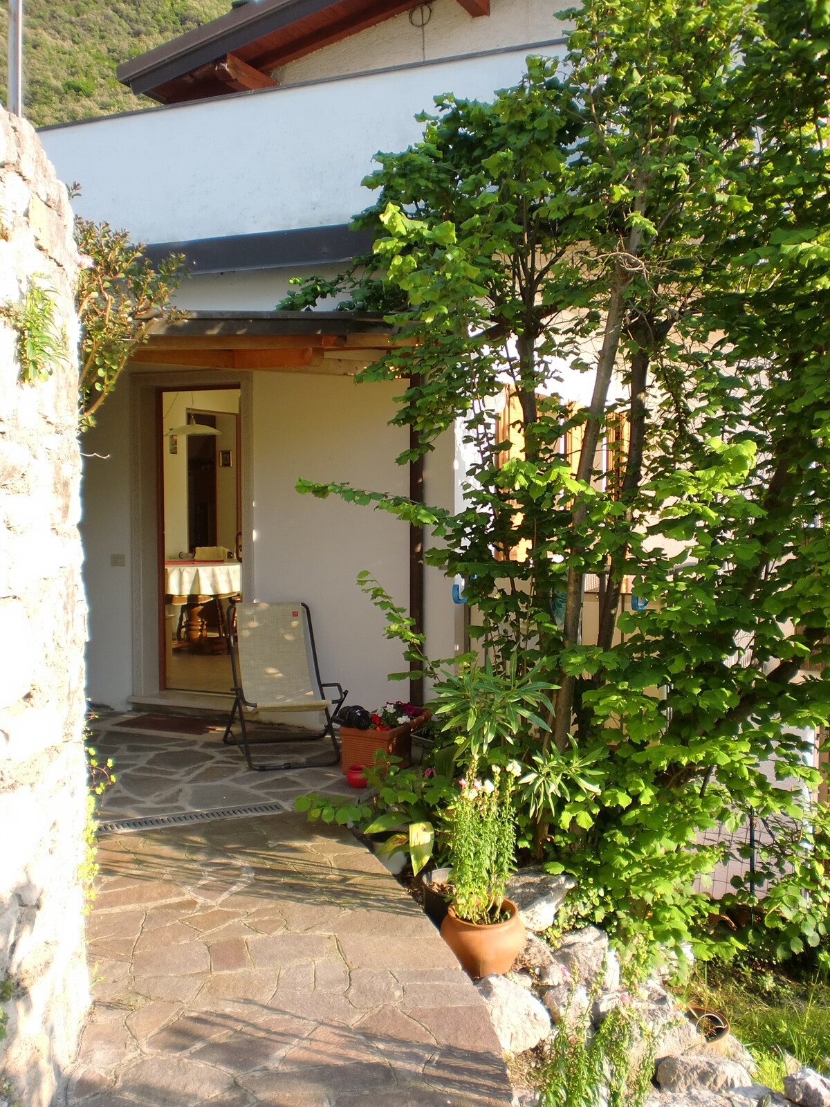 Accogliente cottage immerso nel verde. Ottima posizione. Situato a 700 m. da Bezzecca. Nei pressi della pista ciclabile per il Lago di Ledro. Veranda recintata con spazio verde per il confort e la sicurezza del vostro cane. Ampio prato soleggiato. Al primo piano: cucina attrezzata (frigorifero, lavastoviglie, microonde forno ), zona giorno (TV e stufa) bagno. Piano superiore: 'open space adibito a zona notte. Riscaldamento per soggiorni invernali. Deposito biciclette e parcheggio privato.