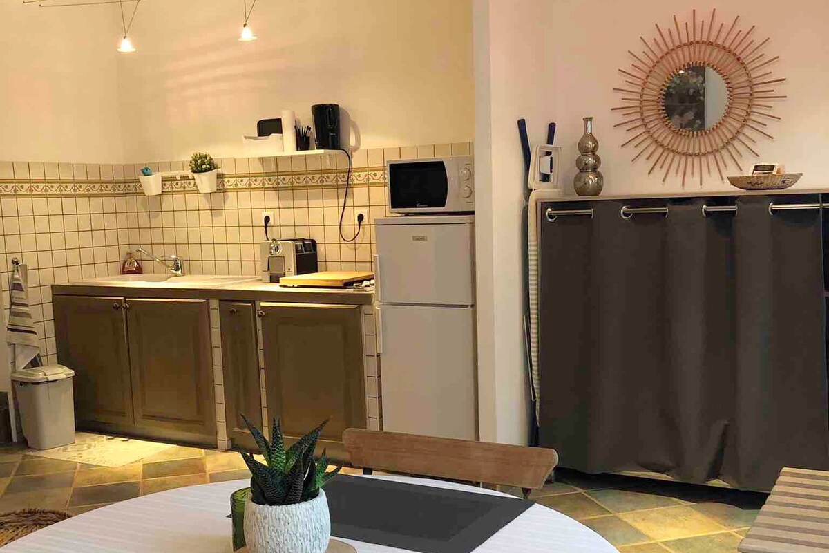 Apartamento/casa independiente con dormitorio y gran salón/cocina + baño. Totalmente equipado para estancias cortas o largas. Cama grande de 160 . Sin vecinos en un gran jardín con acceso a la piscina familiar. Calma absoluta. Cerca del transporte público para el centro de la ciudad y el hospital Lyon Sud. Disfrutará de la comodidad, las vistas y la ubicación. Alojamiento perfecto para parejas, personas que viajan, personas que viajan por negocios. Aparcamiento asegurado.