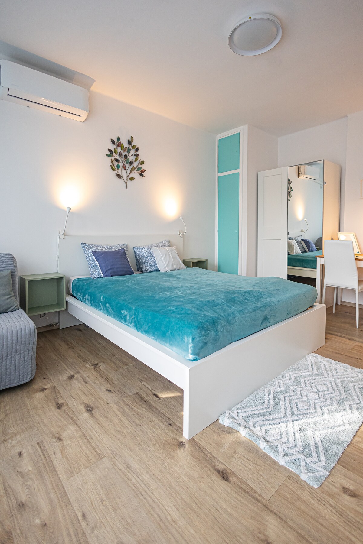Recarga energías en este pequeño y cómodo estudio con aparcamiento en el patio, en un edificio de apartamentos de nueva construcción, cerca de la playa y de los lugares de ocio, pero tranquilo. Alojamiento ideal para parejas o incluso para personas solas, en invierno y verano. Cómoda cama francesa de 160 cm de ancho con muelles bonell, cocina equipada, baño con ducha y bidé, balcón privado y tranquilo con vistas al patio interior, estacionamiento cerrado en el patio.