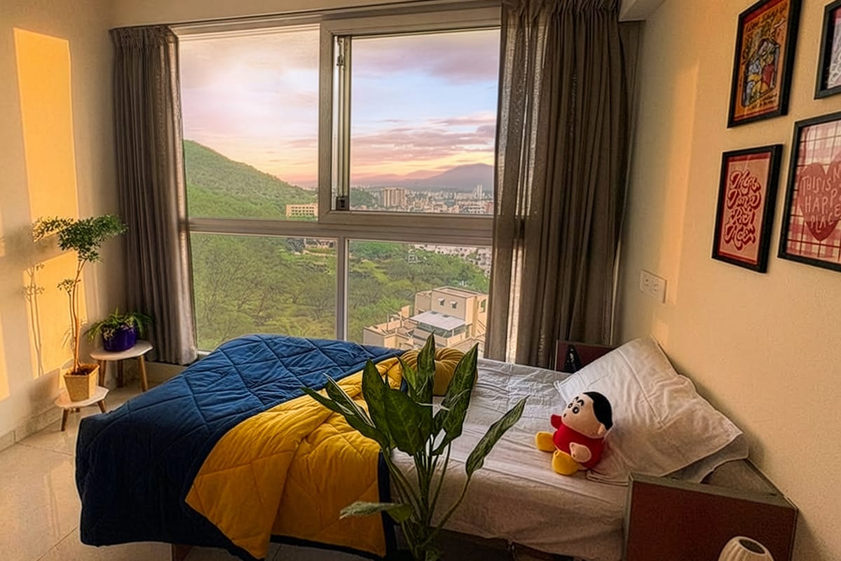 A solo 3,5 km de Balewadi High Street. A 800 metros de la autopista Mumbai-Bangalore. Imagina comenzar el día con los sonidos tranquilos de la naturaleza: el llamado de los pavos reales, el susurro de las hojas y unas vistas impresionantes de las colinas de Baner y el lago Pashan Hill, todo desde tu cama. Bienvenido a Casa Symphony, un espacioso apartamento tipo estudio que se siente como un hogar lejos de casa. Este no es solo un alojamiento, es un espacio diseñado para ayudarte a relajarte, recargarte y obtener inspiración.