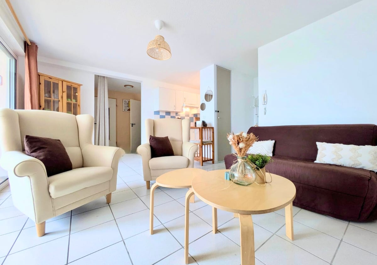 Nuestro alojamiento, un T2 a estrenar con jardín y una decoración cuidada está idealmente situado a orillas del lago marino, a 500 METROS de la playa oceánica, a dos pasos del centro del pueblo, de su gran mercado diario en verano y de todas las animaciones. En una residencia nueva y segura con una hermosa piscina nuestro apartamento tiene aire acondicionado, muy bien equipado incluso al aire libre con plancha y muebles de jardín.