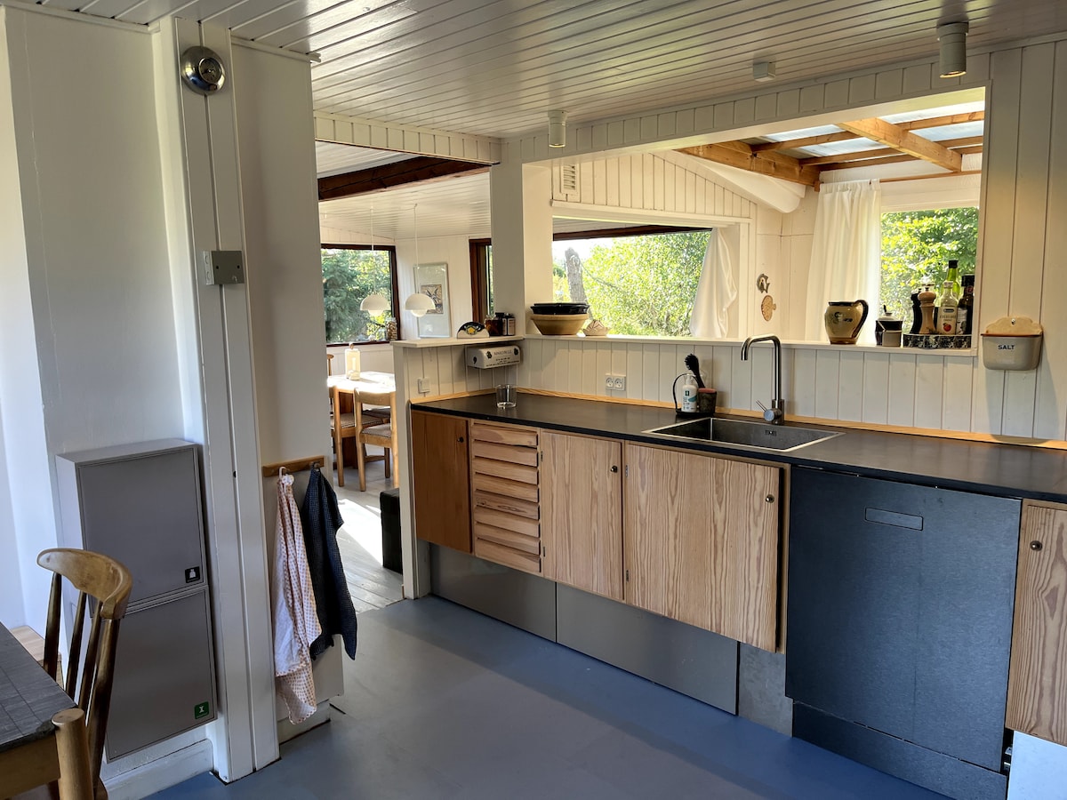 ¡Bienvenido a Lyngen! Aquí está a 10 minutos a pie de una de las mejores playas de arena de Dinamarca, una parcela aislada rodeada de árboles, una fogata para reunirse y un toldo para buscar sombra. En nuestra pequeña casa hay techos altos, un acogedor loft que puedes decorar como un área para dormir o como sala de lectura y hay todo lo necesario para las comodidades; lavadora, lavavajillas, agua caliente, bomba de calor, chimenea, TV, Chromecast, Internet y muchos juegos de mesa y rompecabezas para los días lluviosos.