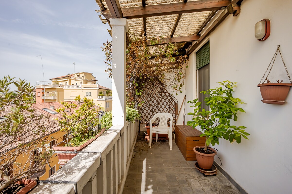 Encantador y cómodo apartamento en el centro de Padua, ciudad rica en arte y cultura y cerca de Venecia. En una ubicación práctica, cerca del centro histórico, transporte público y Fiera Campionaria. Alojamiento acogedor y luminoso, en el cuarto y último piso de un edificio, equipado con ascensor; desde la terraza cubierta, la vista se extiende hasta las colinas Euganeas. Ambiente íntimo y cuidado de los espacios interiores y de la logia. Adecuado para parejas, familias, viajeros de negocios y grupos de amigos.