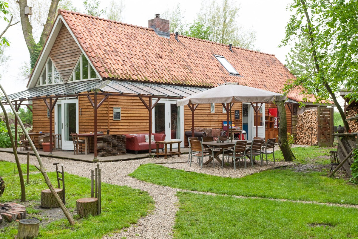 Te proponemos nuestra característica y espaciosa casa de campo para disfrutar de la naturaleza en familia o en grupo, máx. 7 adultos. Los niños son bienvenidos, pero la casa no está equipada con puertas de escalera, etc. Situada en las tierras de cultivo, aunque muy céntrica en el país y a solo 2 minutos de la autopista al sur de Utrecht. La casa está totalmente renovada y equipada con todas las necesidades. Varias rutas para ir en bicicleta y a pie pasan por la granja. El centro comercial más cercano está a 2 km.