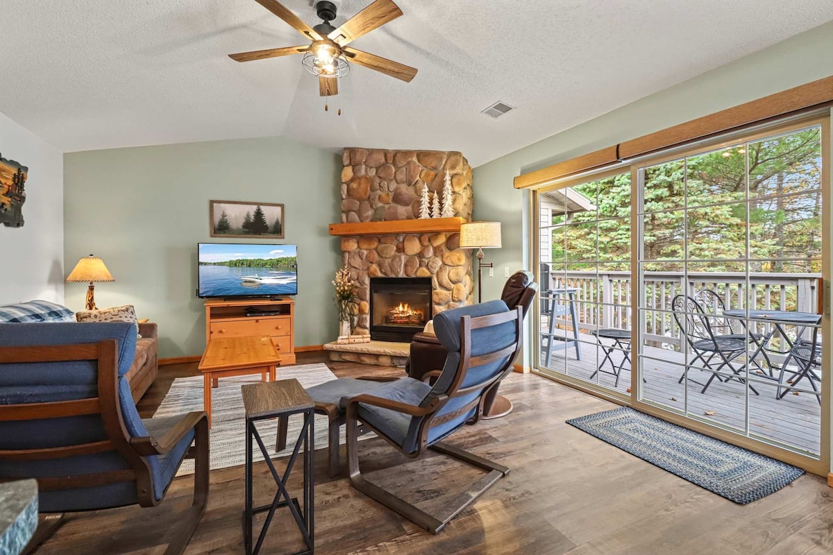 Experience the beauty of Wisconsin’s Northwoods when you stay at this charming 2-bedroom, 2.5-bath vacation rental in Minocqua! Nestled along the serene shores of Minocqua Lake with a community boat dock, this condo offers the perfect destination for families and outdoor enthusiasts. When you’re not out on the water, hike the Bearskin State Trail or enjoy cross-country skiing at Minocqua Winter Park. After your adventures, curl up next to the fireplace and stream a good movie on the Smart TV.