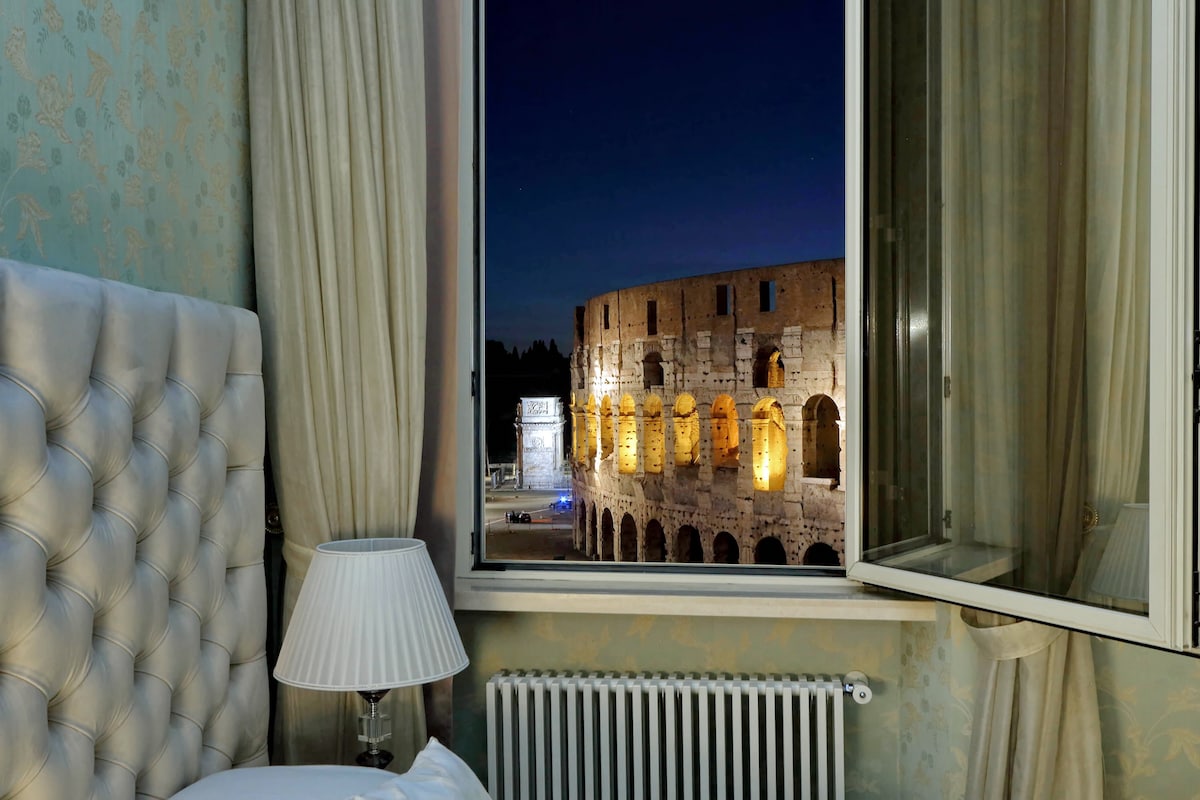 La Casa del Conte Ricci Marchetti se encuentra en el tercer piso (con ascensor) de un edificio histórico frente al Coliseo; personalmente amueblado por el Conde con solo materiales valiosos hechos en Italia, la casa es mejor su gusto refinado y un amante del arte clásico; está perfectamente insonorizada y el aire acondicionado está presente en cada habitación; consta de dos dormitorios con un dormitorio doble, dos baños con ducha/jacuzzi), una cocina completa y una maravillosa sala de estar