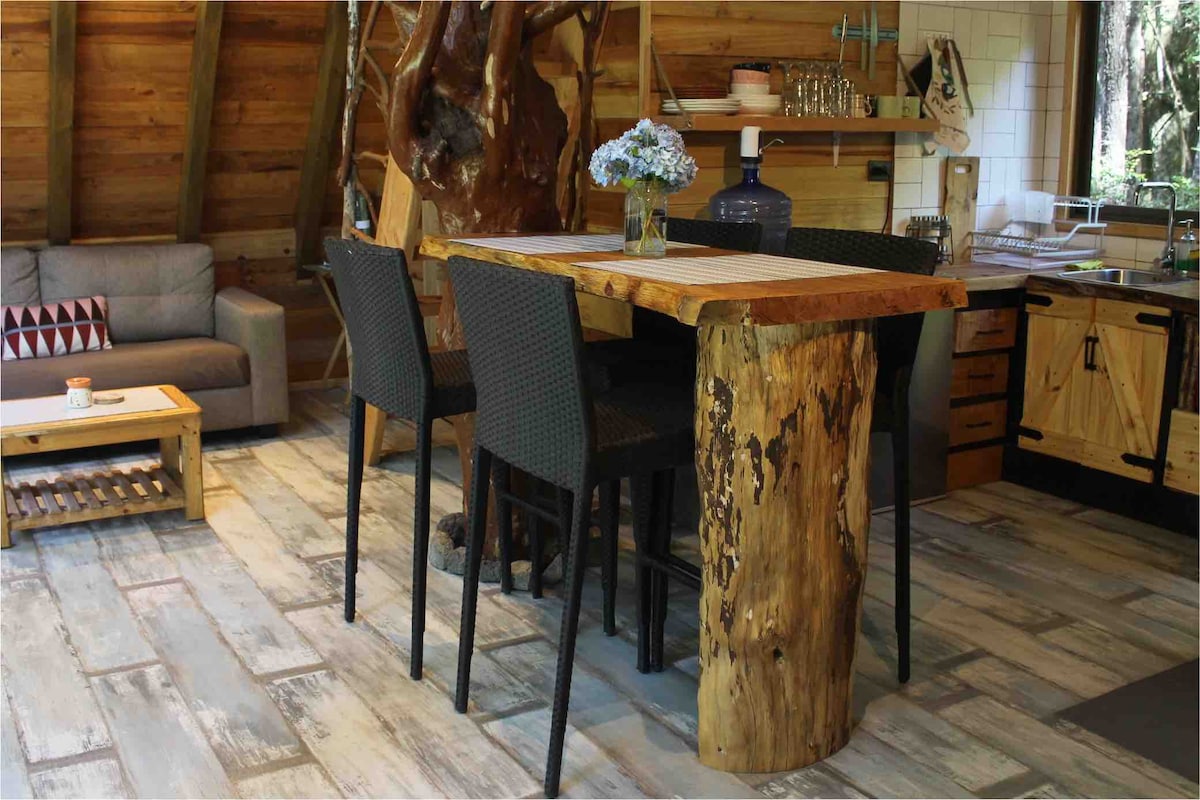 Relájate en esta escapada única y tranquila.Inmersa dentro del bosque nativo, como en un cuento, viviendo la naturaleza como una unidad podrás ver las estrellas y la luna en la noche desde tu cama… si el tiempo lo permite. Disfrutar de la lluvia y, en ocasiones, nieve en todo su esplendor! Cuenta con tinaja privada! La tinaja tiene valor aparte (no está incluido en el valor de la cabaña - costo $40.000 por vez que se utiliza)