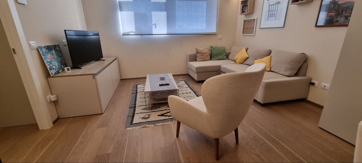 Retiro luminoso y acogedor perfecto para un máximo de 4 huéspedes, situado en un elegante barrio de Milán. El apartamento cuenta con una amplia pared de cristal que se abre al exterior, llenando el espacio de luz natural y ofreciendo una vista agradable. Incluye un dormitorio con una cama tamaño queen y un cómodo sofá cama en el salón. Amueblado cuidadosamente para combinar comodidad y diseño, es la opción ideal para parejas, viajeros solos o grupos pequeños que buscan una base tranquila y elegante en Milán.
