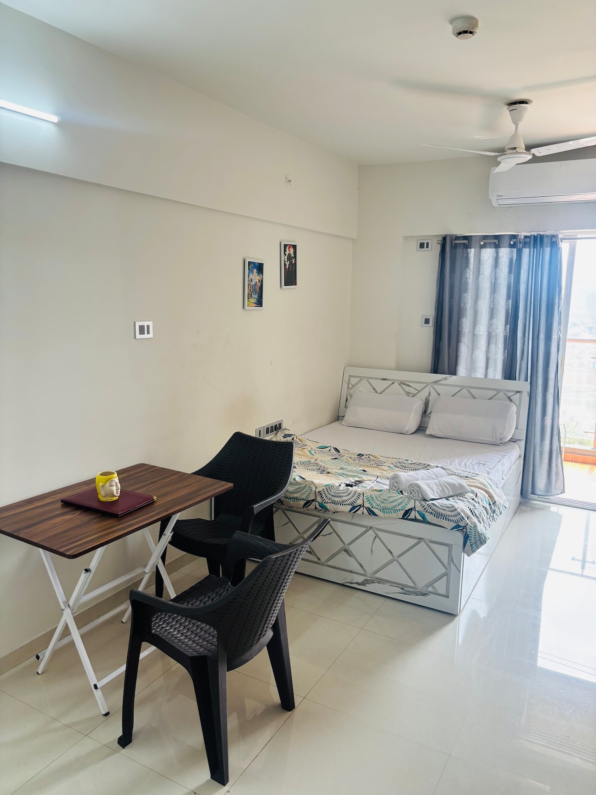 MEDIO: calma en MEDIO del caos. Un estudio tranquilo a solo 5 minutos del aeropuerto de Pune ✈️ 🛏️ Cómoda cama doble con sábanas limpias 📶 Wifi de alta velocidad y 📺 Smart TV de 43" con OTT | Netflix | Prime | Youtube Premium | Etc. 🌇 Balcón privado e iluminación cálida 🍴Utensilios de cocina, inducción, hervidor, nevera 👫🏻 Se admiten parejas 🛁 Baño limpio con artículos básicos 🔐 Comunidad privada con seguridad 24x7 y circuito cerrado de televisión 🛎️ Registro automático, tranquilidad y familias 📩 Para obtener más información, no dudes en ponerte en contacto con nosotros.
