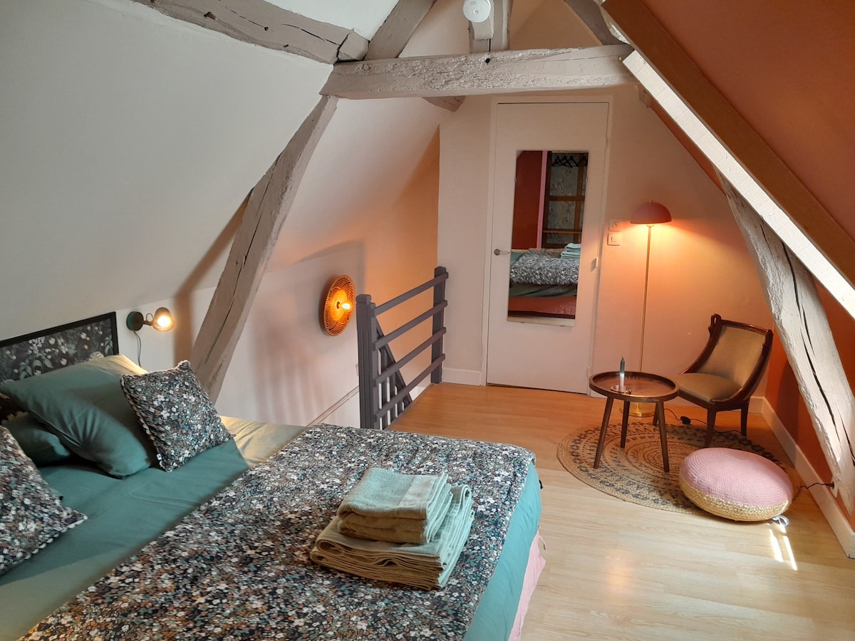 nuestro dúplex en la planta baja de 30 m² está decorado con mimo . La casa es atípica con sus paredes de piedra , su dormitorio de arriba y sus bonitas vigas. Bienvenido a LaFolie de Seraphine. Nuestra casa se encuentra en una pequeña calle empedrada , típica del centro de Senlis , con vistas a un patio muy tranquilo ,. Las tiendas están a 3 minutos andando, así como la catedral, las murallas, el castillo real , los museos... Senlis se encuentra a 15 minutos del parque Astérix y de Chantilly