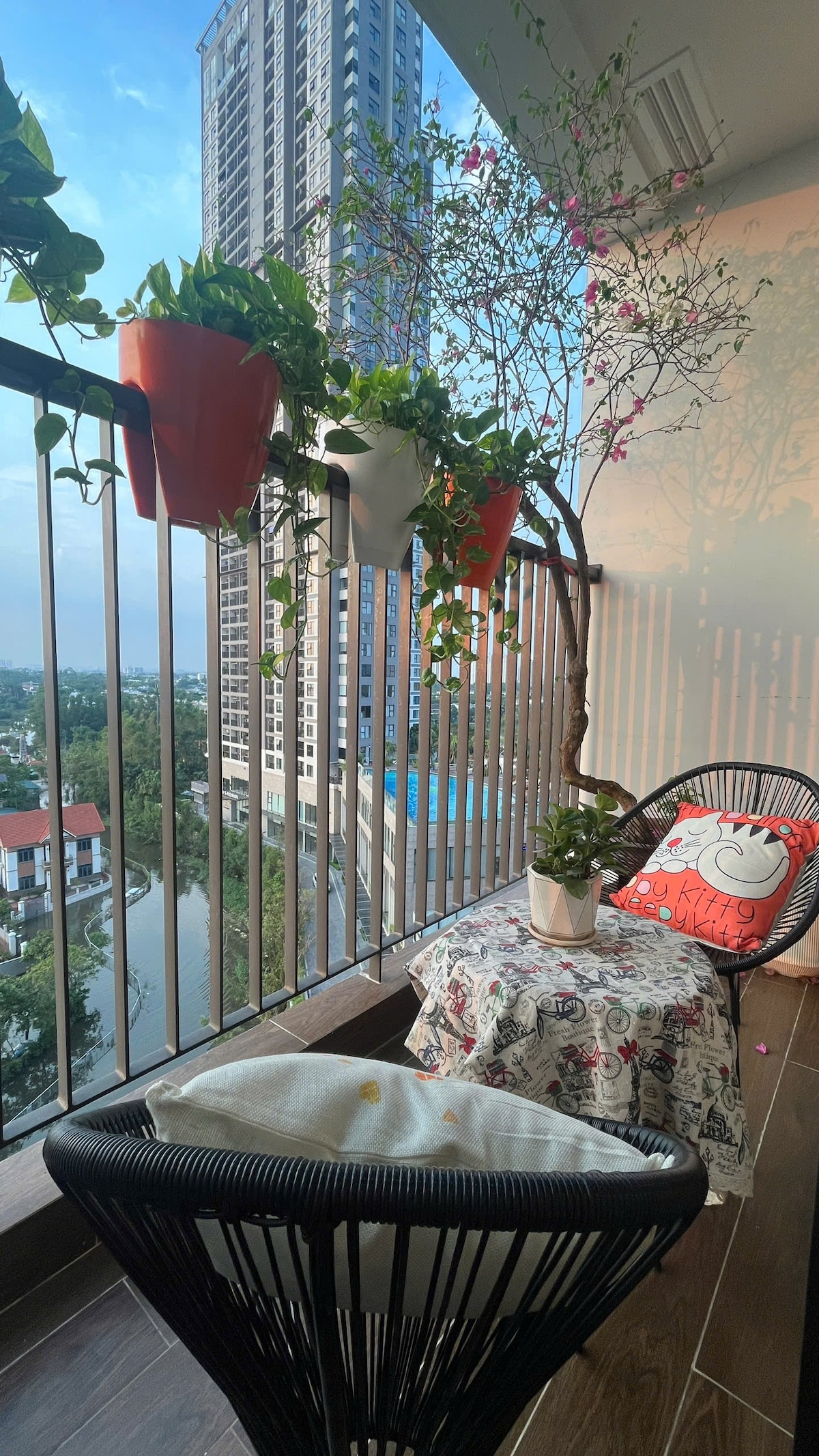 Apartamento nuevo con 2 camas dobles, vista al balcón 1 parte de la piscina: - El edificio tiene un jardín colgante Babylon de 4000 m2: barbacoa gratuita (parrilla, parque infantil, despensa mojada, mesas y sillas), cine al aire libre gratuito el sábado por la noche. - Zona de juegos para niños en el primer piso del edificio. - Piscina de tecnología salada, sauna con tarifas preferenciales para los residentes. - Muchos restaurantes, supermercados, cafeterías...