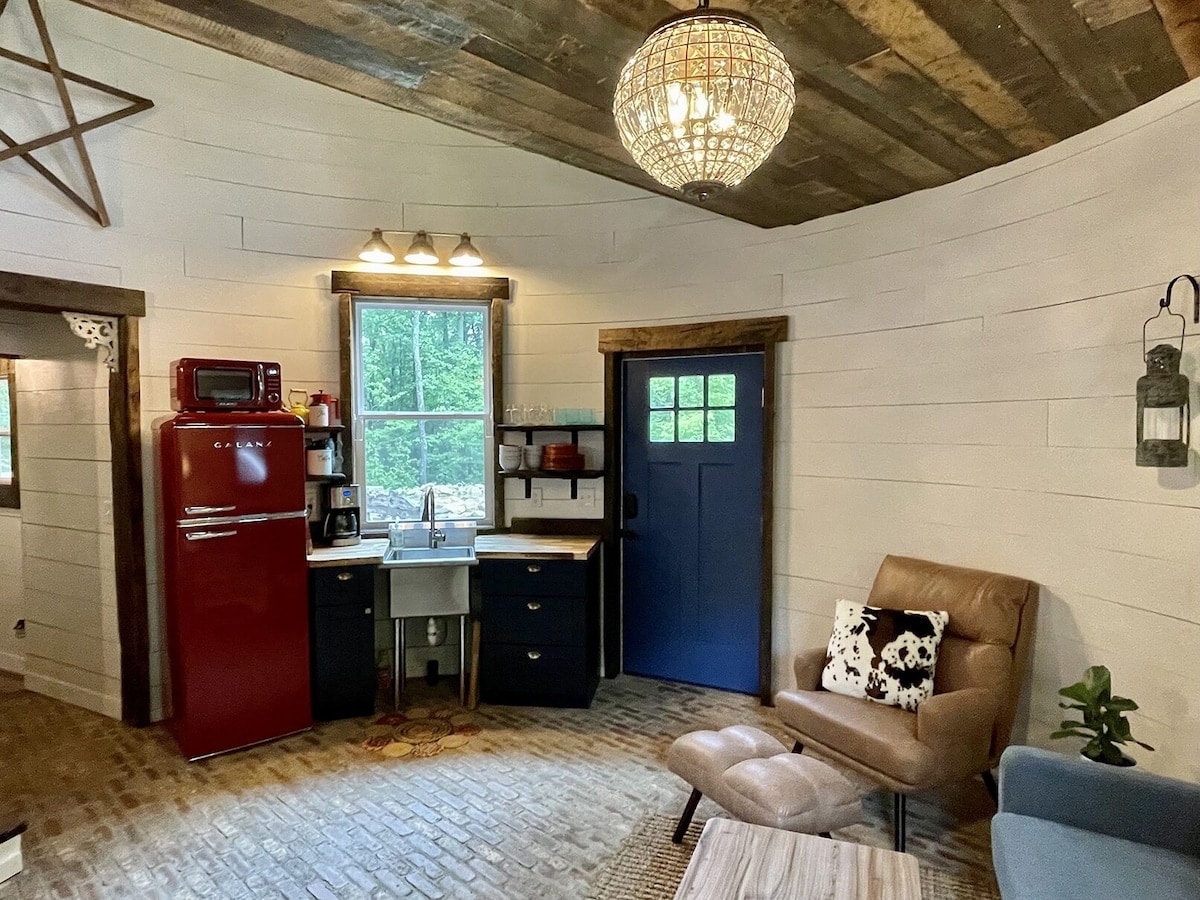 Para los amantes de los animales que buscan una escapada exclusiva y única, este Airbnb boutique en Scottsville ofrece una escapada tranquila donde los huéspedes pueden relajarse en la naturaleza y conectarse con los animales residentes del santuario. Reconocido por la revista Northern Virginia, Trips 101 y Trips to Discover como uno de los alojamientos más distintivos de Virginia, este retiro cuidadosamente seleccionado cuenta con muebles acogedores, encantadores detalles artesanales y una amplia ventana que muestra las vistas de los animales.