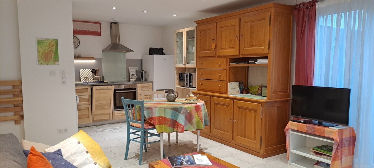 Superbe Gîte tout confort avec tous les équipements nécessaires. Plus qu’à déposer vos valises, vos lits et serviettes de toilettes sont prêt à votre arrivé ! Piscine ouverte entre le 15 juin et le 15 septembre. ( piscine non chauffée) A 10 minutes à pied du centre ville et 3 minutes en voiture. Les pistes de ski sont à 7 min en voiture et les sentiers de randonnées sur place. Parking privé sur place GRATUIT