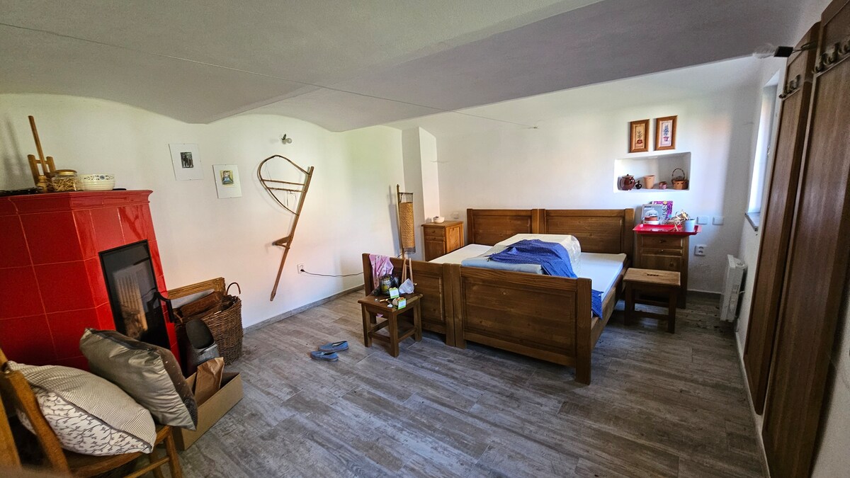 En este alojamiento tranquilo en la naturaleza, toda la familia podrá descansar. Tranquilidad, animales y un entorno hermoso sin el ajetreo de la ciudad, aunque la ciudad de Český Krumlov está a 10 minutos en coche, el famoso embalse de Lipno a 30 minutos y el teleférico Kozí plán a 15 minutos. Gran cantidad de paseos, rutas ciclistas y excursiones por los alrededores. En nuestro alojamiento le ofrecemos todo lo que nosotros mismos apreciaríamos. Nos esforzamos por hacer todo lo posible para su satisfacción. Al lado del apartamento hay un corral con ovejas que podemos alimentar juntos. Los propietarios también son masajistas profesionales
