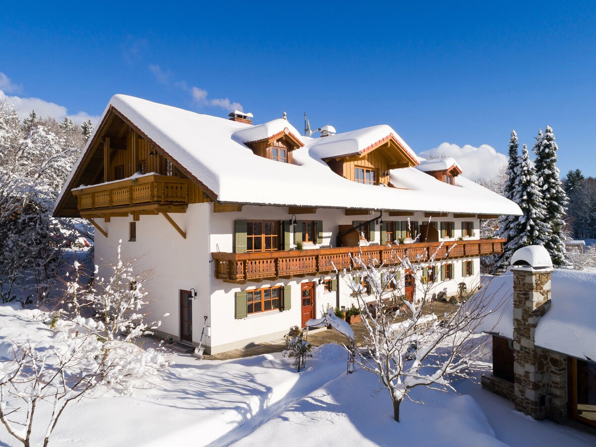 Bienvenido a la familia Pilsl en Ruhmannsdorf. Le ofrecemos un acogedor, amplio y confortable apartamento para 2-4 personas y un niño pequeño. Está ubicado en una tranquila granja de cuatro lados, a unos 5 km de la localidad de Hauzenberg. Además de las muchas actividades de ocio que ofrece Hauzenberg, también es un punto de partida central para actividades en el bosque bávaro o en la ciudad de los tres ríos de Passau.