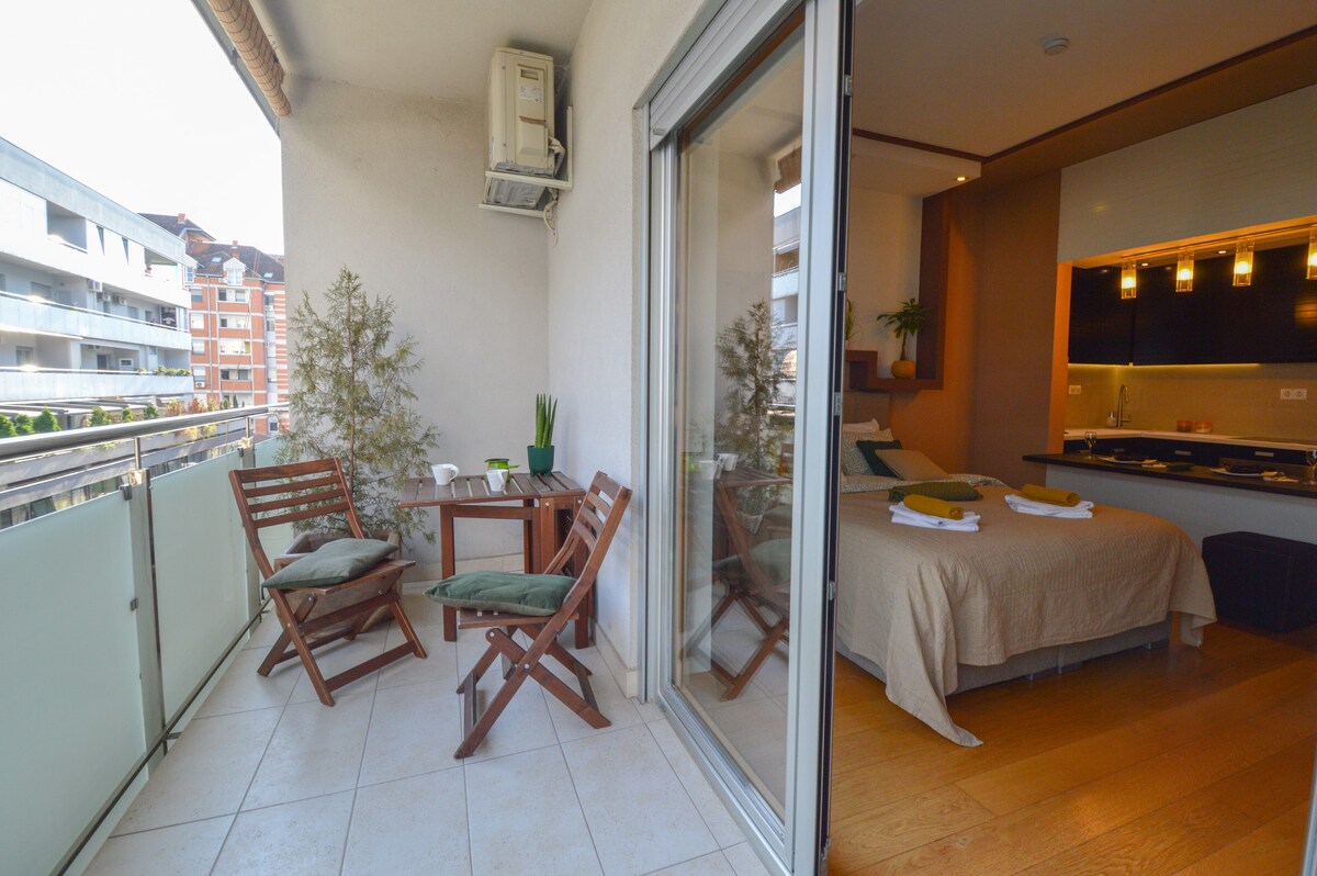 Apartamento de 1 dormitorio de 35 metros cuadrados (375 pies cuadrados) en la planta baja superior con balcón con vistas al jardín, viene con estacionamiento PRIVADO GRATUITO en el ultramoderno condominio de 3 pisos sin tocar completado a finales de diciembre de 2017. Serás uno de los primeros huéspedes en alojarse en este apartamento en el corazón de la ciudad de Novi Sad, a 800 metros o a menos de 10 minutos a pie de la plaza central de la ciudad. A poca distancia a pie de la estación de tren de Novi Sad y la terminal de autobuses (600 metros).