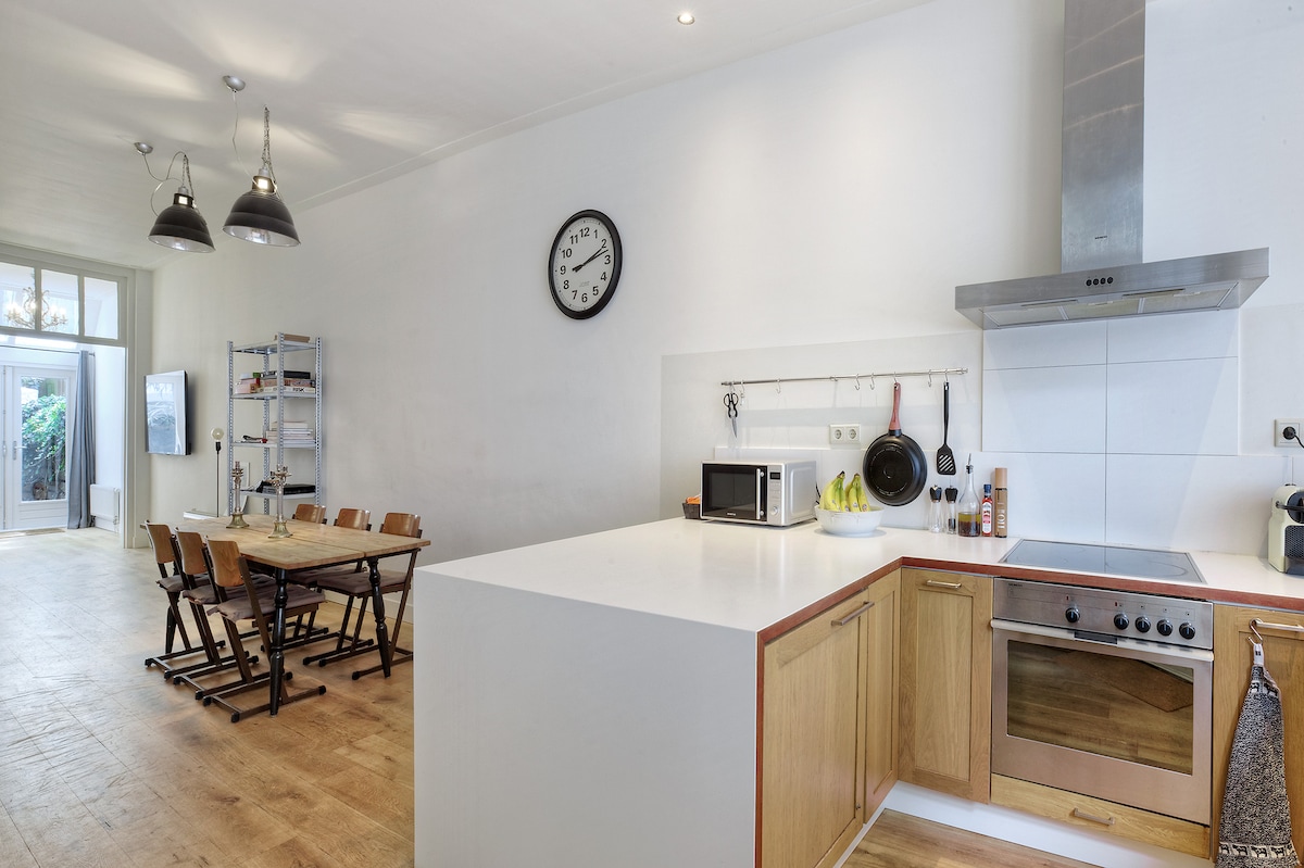 ¡Alójate en el corazón del verde y tranquilo barrio Plantage de Ámsterdam! Nuestro apartamento de 2 dormitorios ocupa toda la planta baja de una casa adosada del siglo XIX y es perfecto para 4 personas. Cada dormitorio tiene su propia ducha y lavabo, además hay un baño separado. Relájate en la amplia sala de estar, diseñada con un toque moderno. Sal y explora nuestro encantador barrio, a solo un corto paseo o en tranvía de las principales atracciones de la ciudad. Ten en cuenta que este es un apartamento para no fumadores.