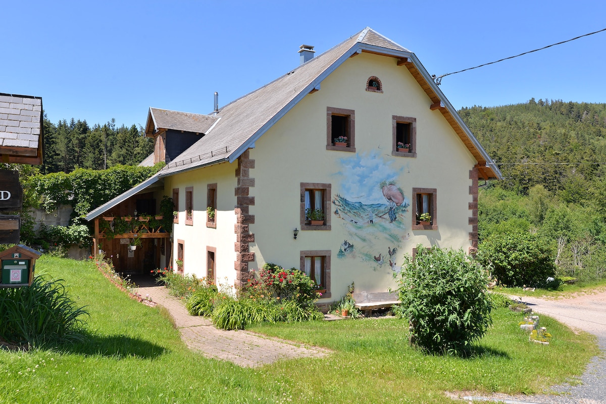 Situado al pie del Gran Balón, en Alsacia, en el corazón del Parque Natural Regional de los Vosgos a 700 m , en plena naturaleza, este nuevo y acogedor alojamiento en la planta baja de nuestra casa le traerá tranquilidad y todas las comodidades para una estancia de lo más relajante. Ofrece una vista panorámica del pico más alto de los Vosgos, el valle de Thann Saint Amarin y los Alpes en un pequeño pueblo tranquilo ideal para el senderismo, el deporte (BTT, esquí, raquetas de nieve, Trail, parapente, piscina, baño en el lago)